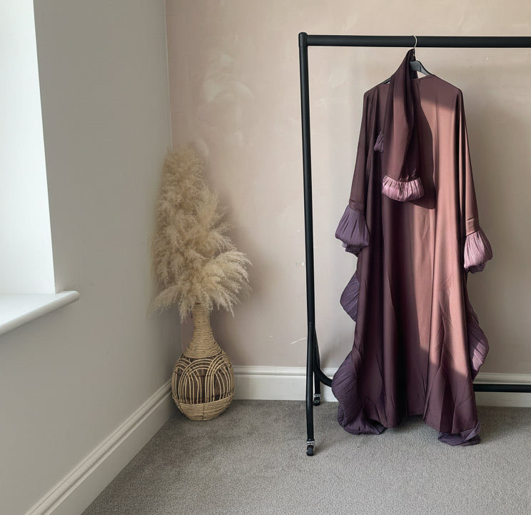 Ruffle Abaya with Inner ties Set Deep Mauve