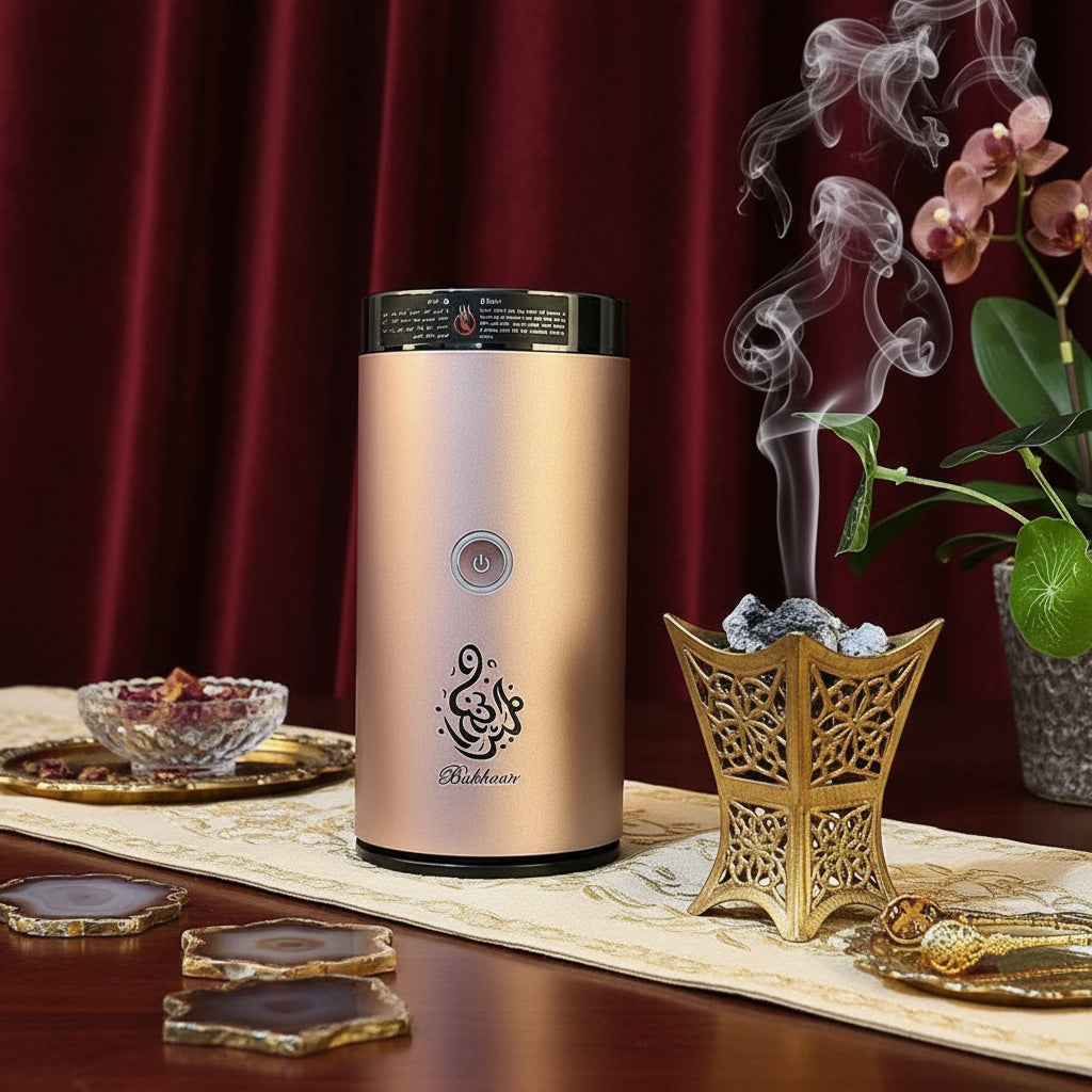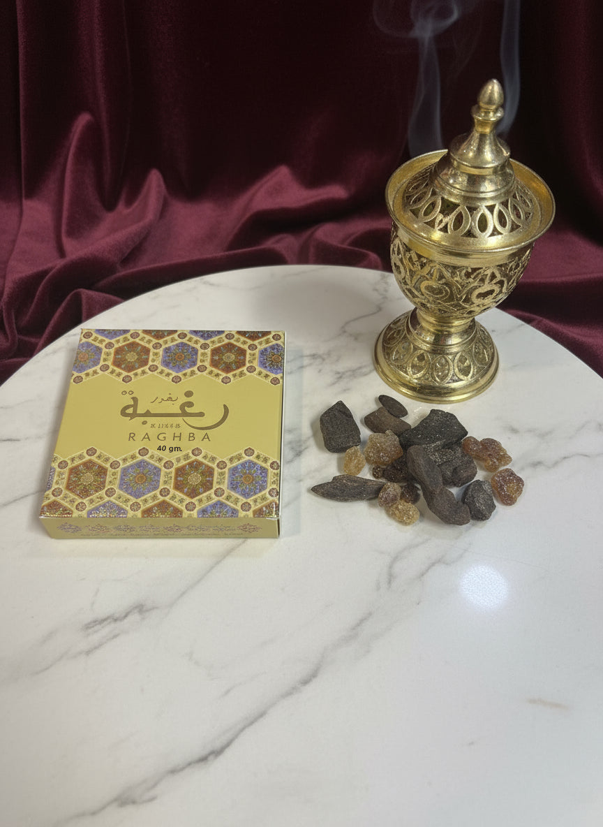 The bakhoor weaves together an aromatic bouquet of raw materials such as sandalwood, frankincense and mixture of the essence of Oudh, Sandlewood, Amber, Rose etc..........it is truly heavenly.
