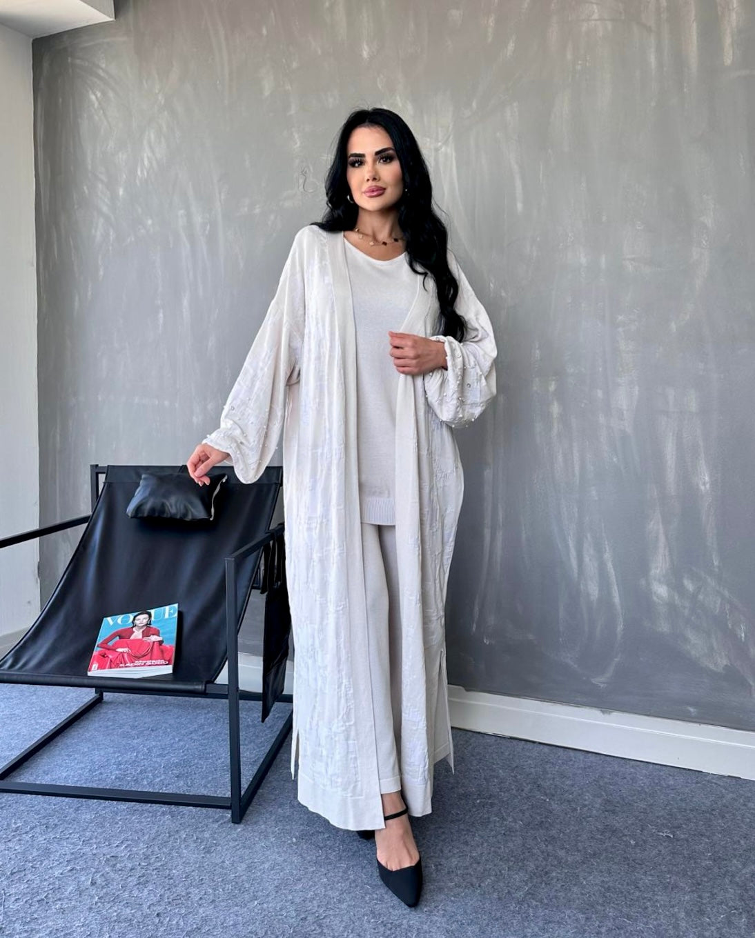 This Co Ords set is designed for the colder months, using a soft velvet Chenille fabric. The A line style is both flattering and modest, suitable for all figures. With wide leg pants. One size to fit up to 16
