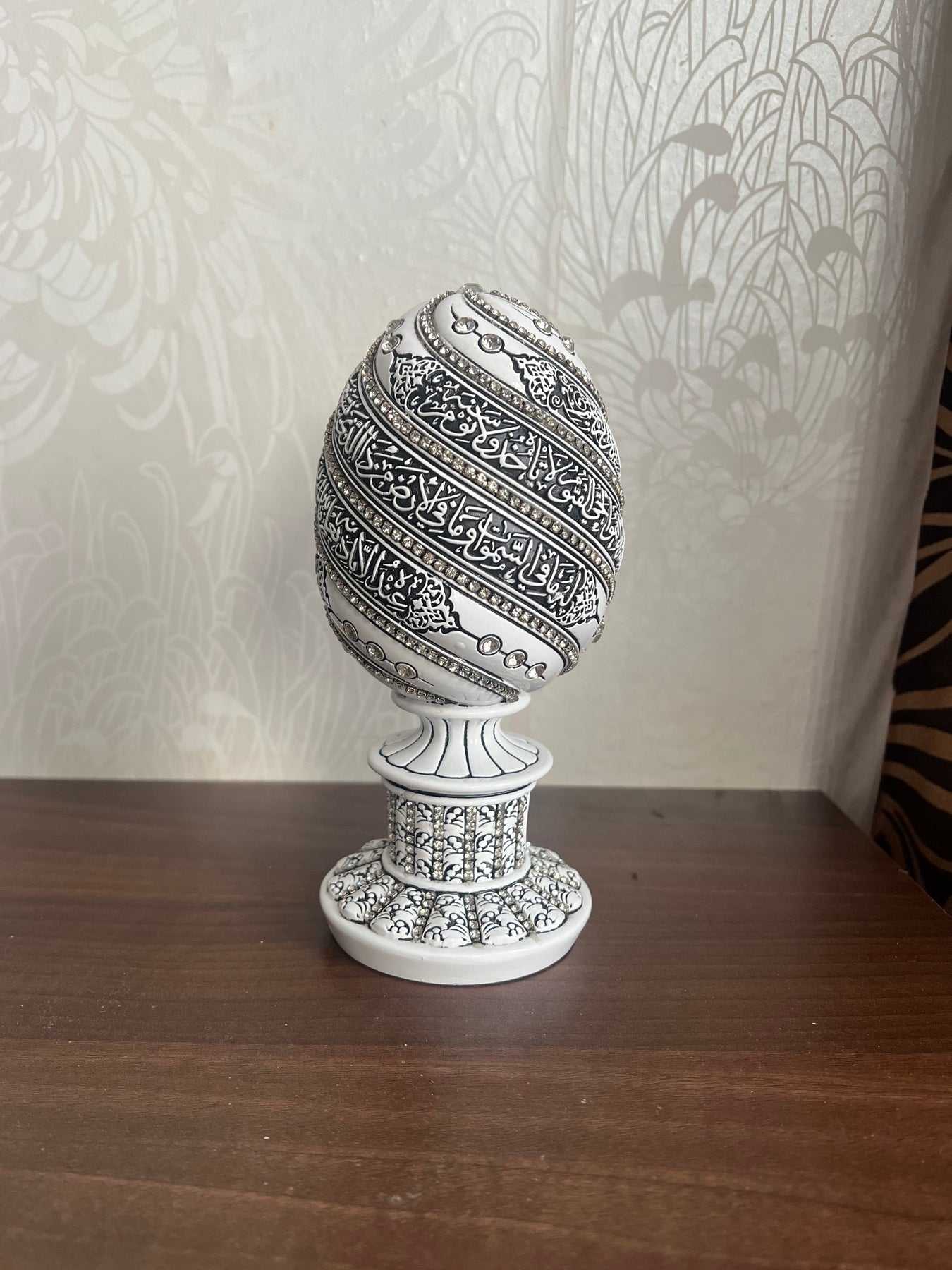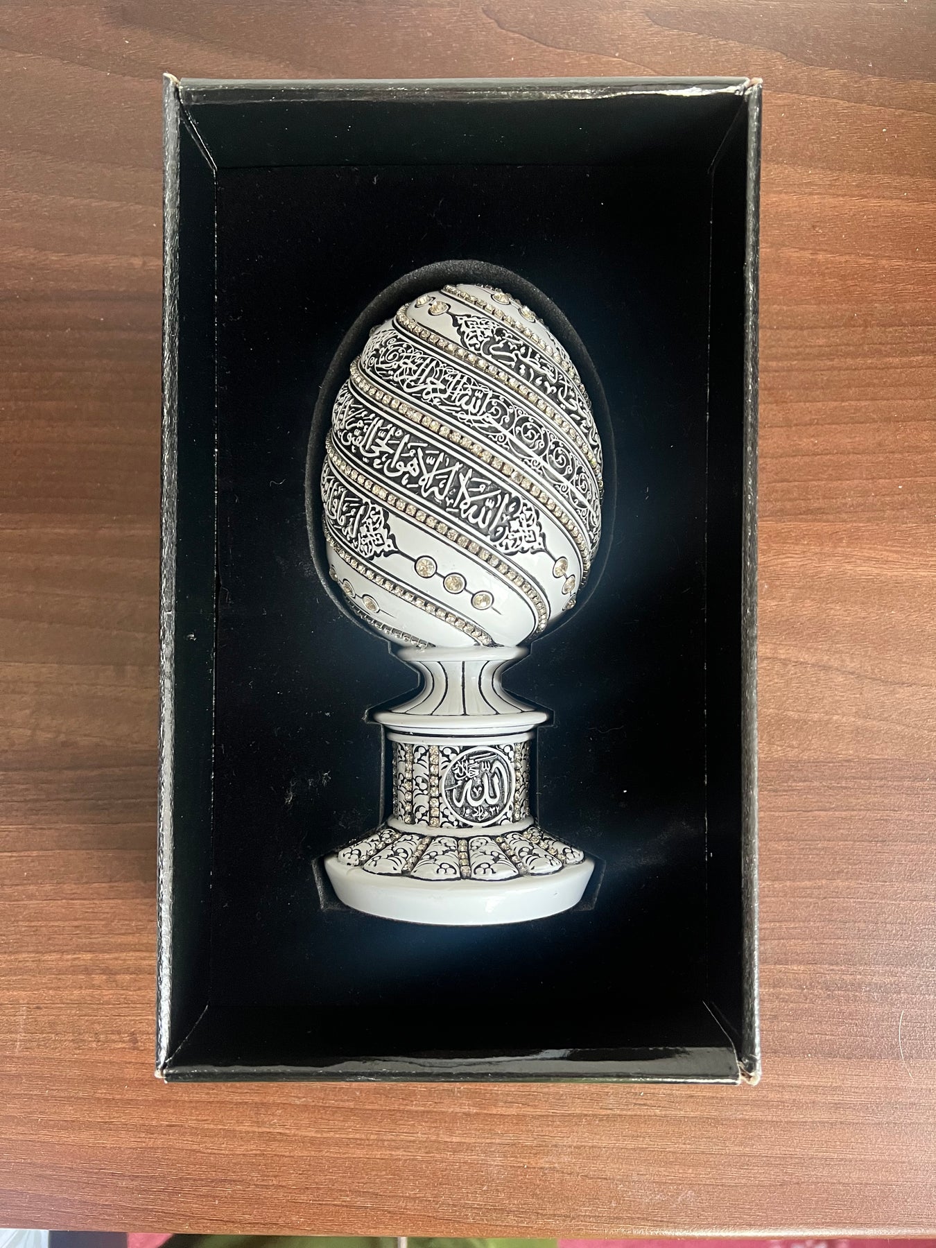 A beautiful Tear Drop shaped sculpture engraved with ʾasmāʾu llāhi l-ḥusnā. The names are also called 99 Attributes of Allah. Accented with rhinestones. Perfect to use as Muslim home decor on mantle or bookshelf or office desk Also great as a gift for Eid Or a house warming gift ...