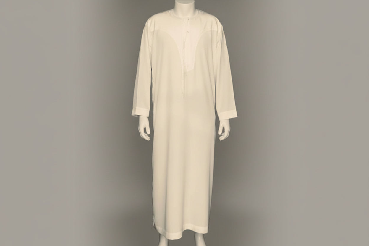 - A comfortable collarless loose thobe with side hidden pockets and front pocket