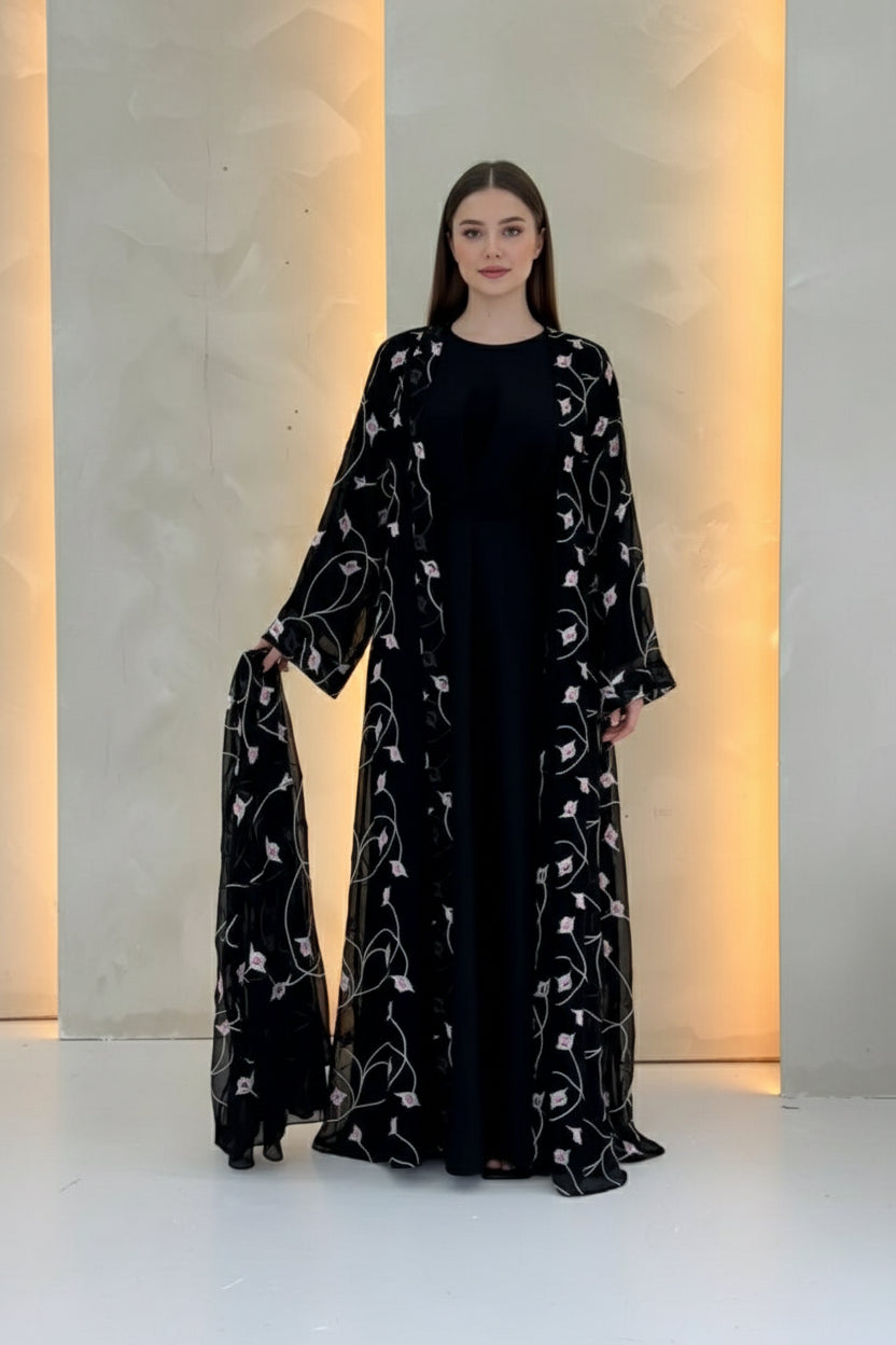 PN. Abaya has 3 layers on sleeves for women like shown on the Rail Abayas