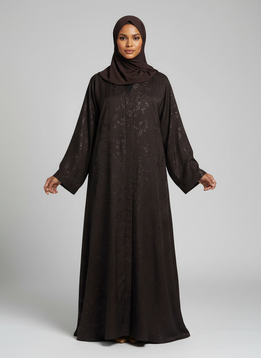 This top-of-the-line jacquard fabric abaya boasts an open and close design, complete with a button fastening. Expertly crafted using premium quality fabric and meticulous stitching, this set also includes a matching hijab and stylish Rope Belt. Available in a variety of sizes and colours for your preference.