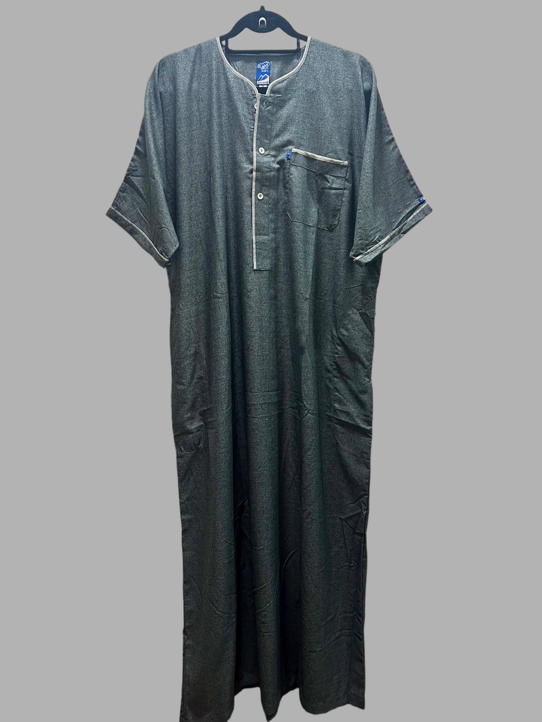 Moroccan Half Sleeve stripe Thobe/ Jubbah - Black & Grey
