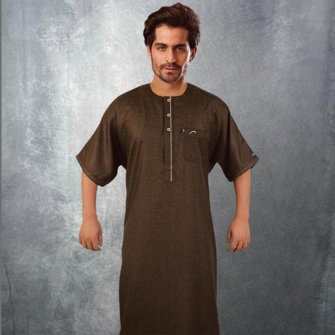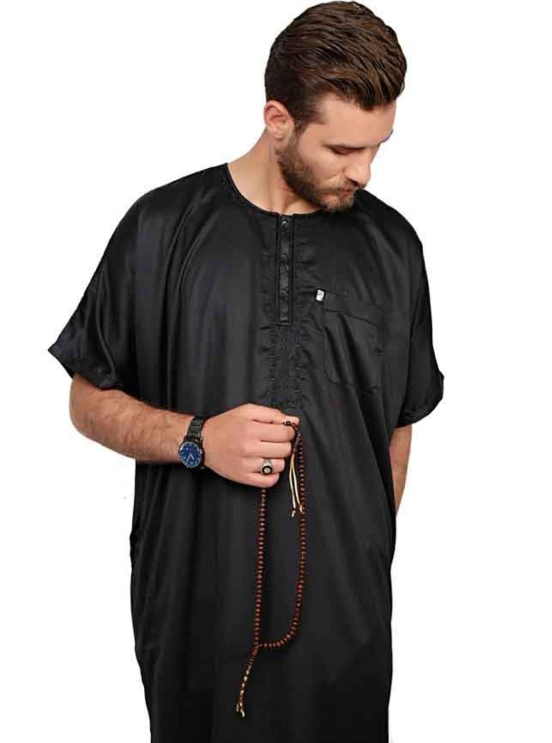 Moroccan Half Sleeve cotton Thobe/ Jubbah - Black & Gold