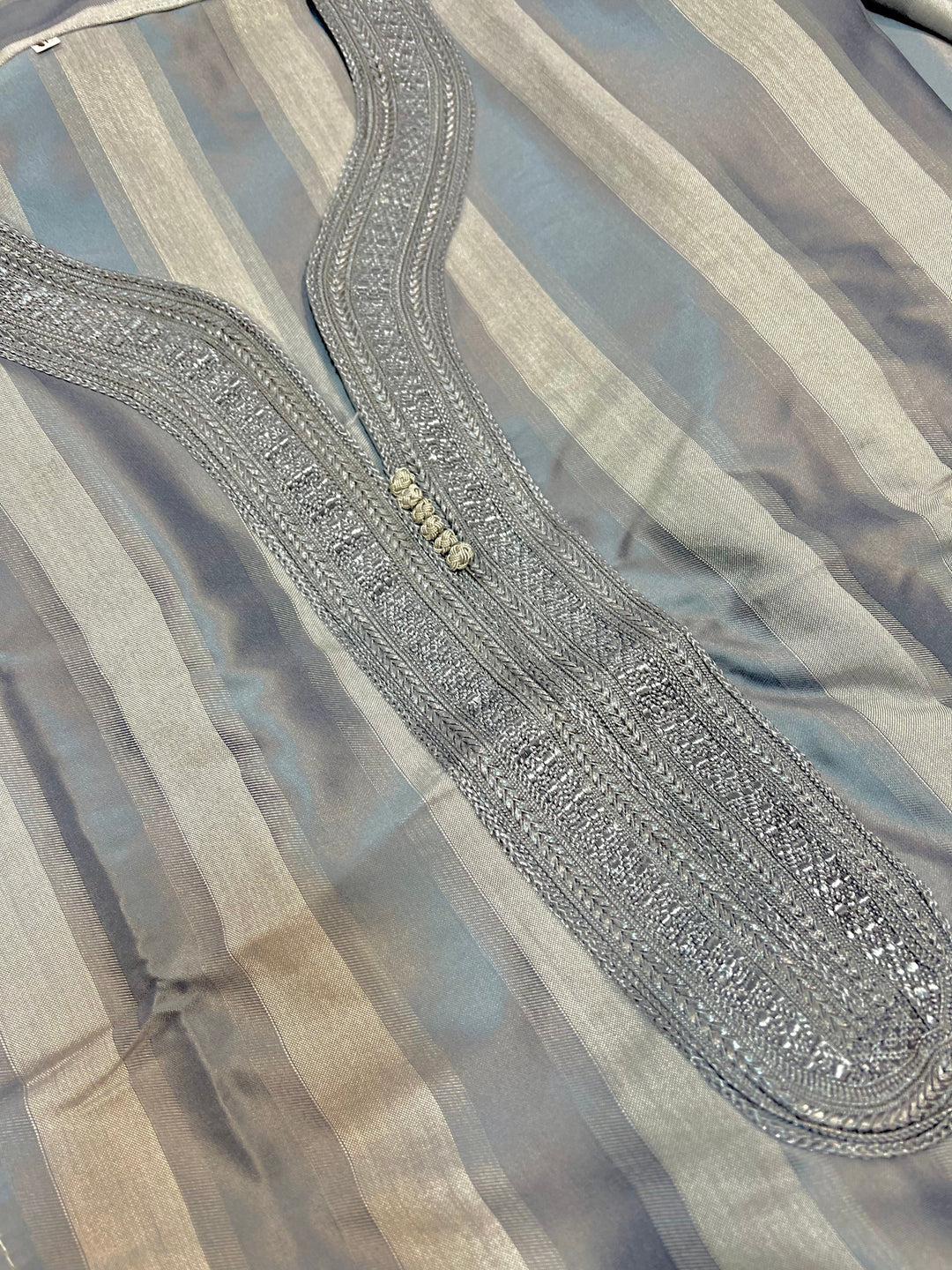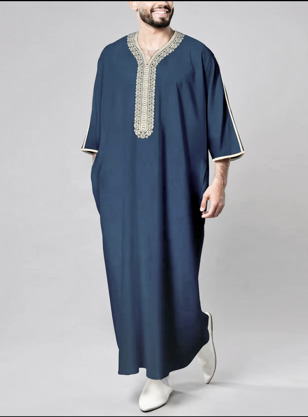 Moroccan Half Sleeve stripe Thobe/ Jubbah - Blue shade