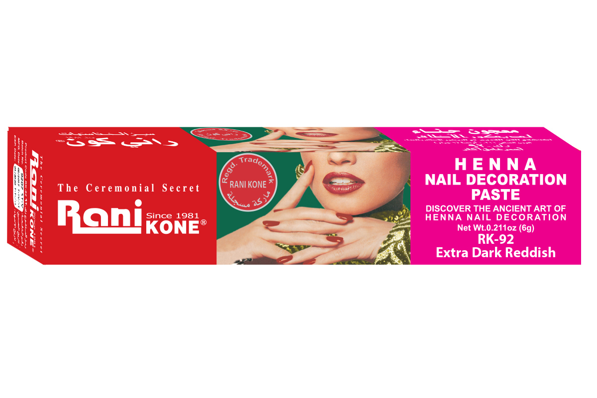 Add a touch of tradition and elegance to your beauty routine with Rani Kone Henna Paste, specially formulated for nail and fingertip decoration. Known for its rich, extra dark reddish stain, this henna is a popular choice for bridal looks, Eid, weddings, and everyday beauty.