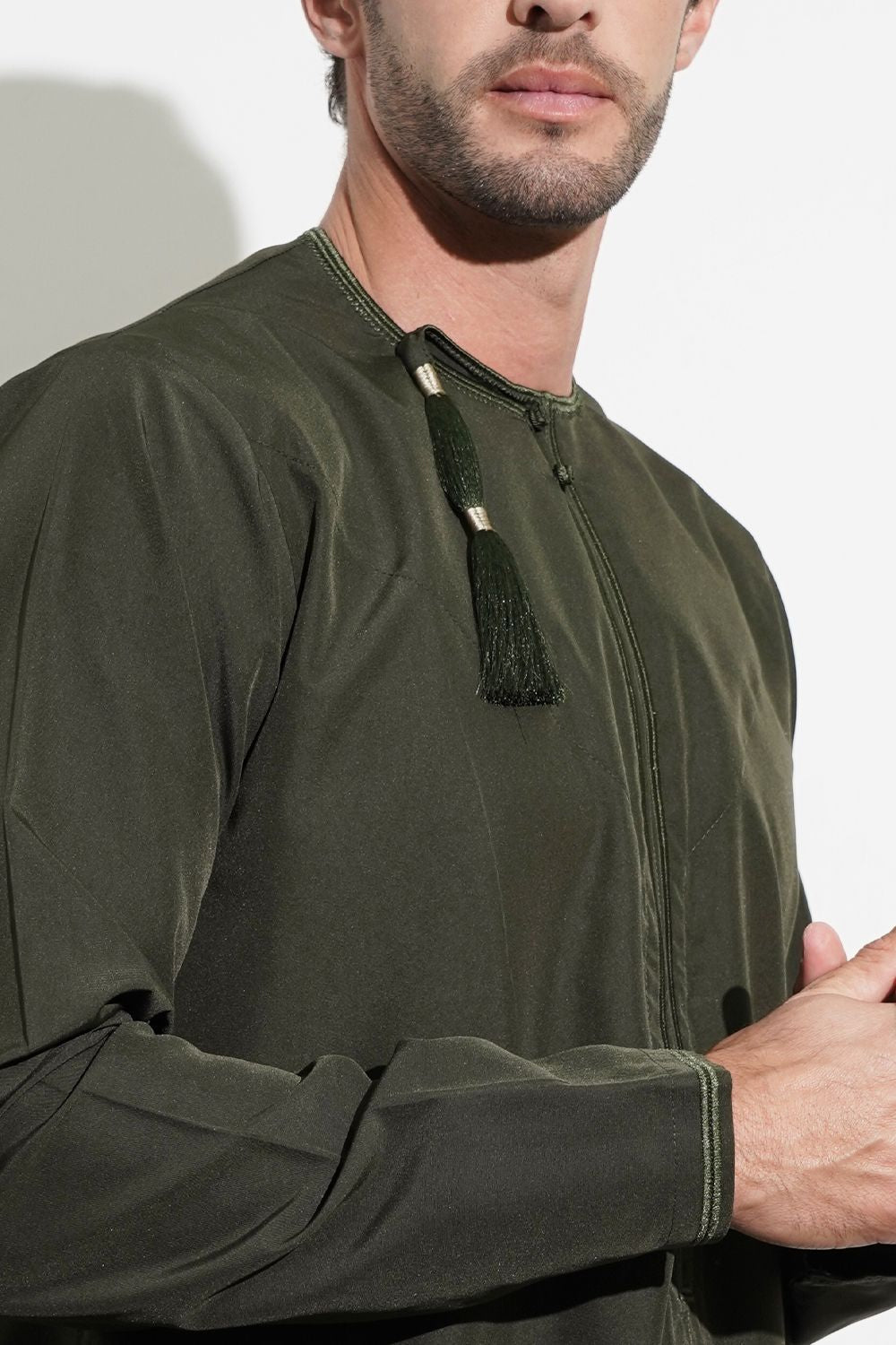 An Elegant Satin Feel Thobe Medium Weight High quality Thobe with easy zip opening and straight sleeves