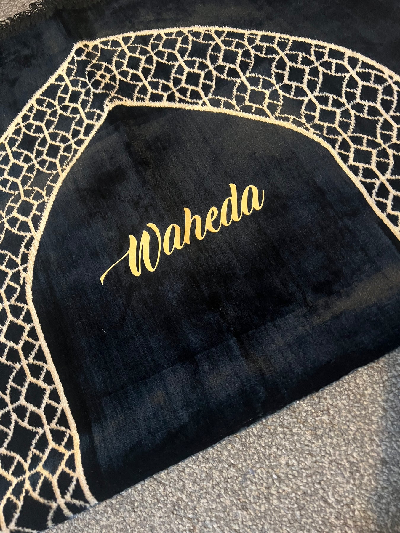 Personlise. Please make sure you add mat colour and finish to basket then leave name for mat on notes at checkout or if want extra dua or message please select the name and Dua mat and leave details at checkout on notes thank you
