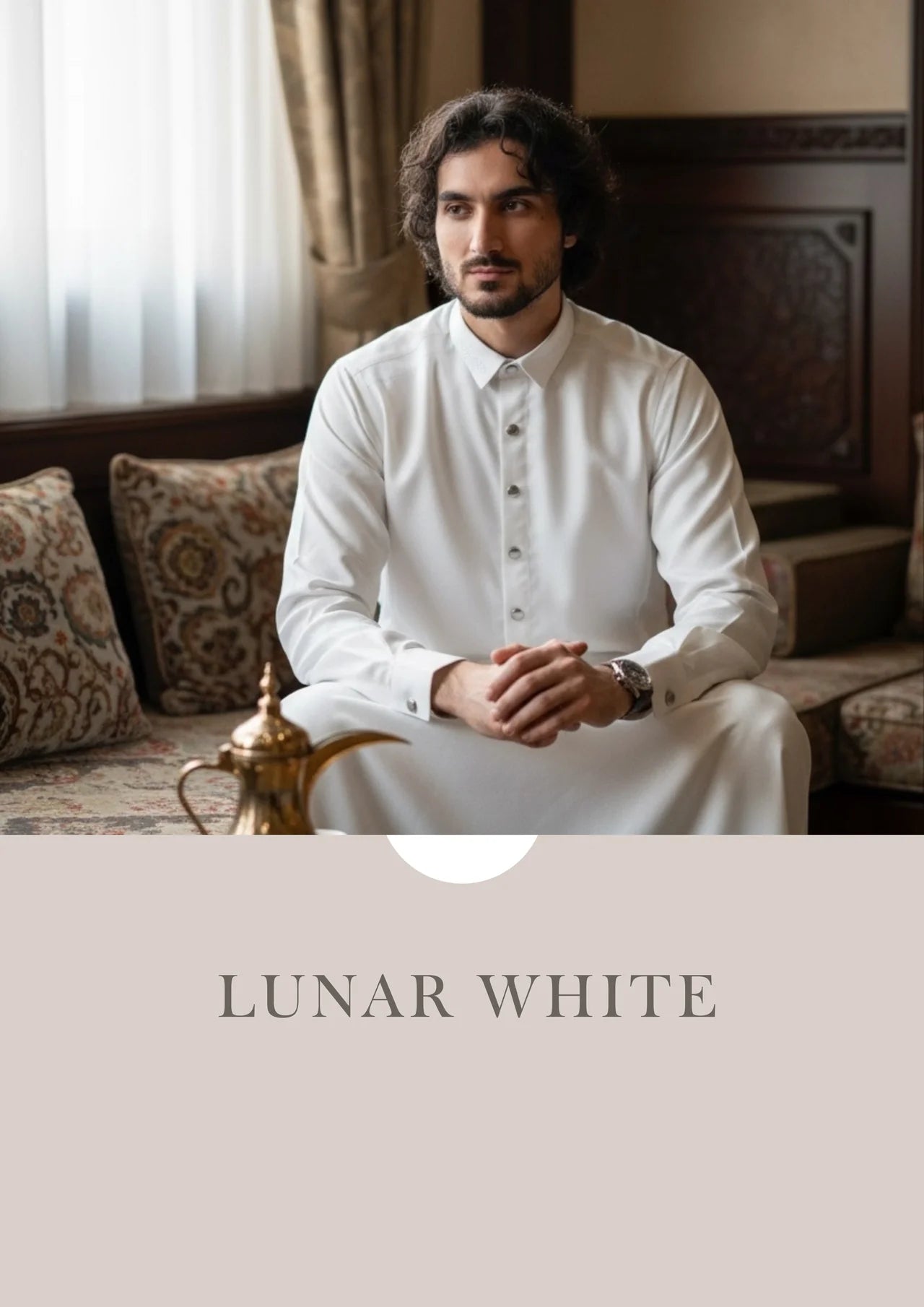 The AAR2633 Al Ameer Thobe embodies understated luxury, blending Arabian heritage with British refinement. Crafted from premium textured fabric, it features a tailored collar, signature collar pin, and refined button detailingfor an elevated, distinguished finish. Designed for those who appreciate craftsmanship, comfort, and timeless elegance.