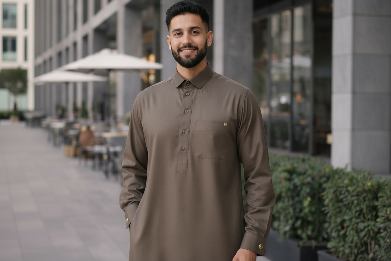 Thoubee Jubbah shirt collar  Taupe with cuff links